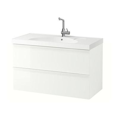 ГОДМОРГОН / ЭДЕБОВИКЕН Шкаф для раковины с 2 ящ - глянцевый белый