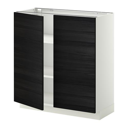 МЕТОД Напол шкаф с полками/2двери - белый, Тингсрид под дерево черный, 80x37 см