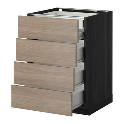 МЕТОД / ФОРВАРА Нплн шк 4фрнт/2нзк/3срд ящ - 60x60 см, Брокхульт под грецкий орех светло-серый, под дерево черный