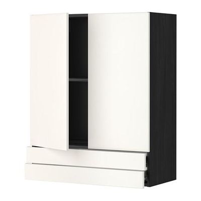 МЕТОД / ФОРВАРА Навесной шкаф/2дверцы/2ящика - 80x100 см, Веддинге белый, под дерево черный