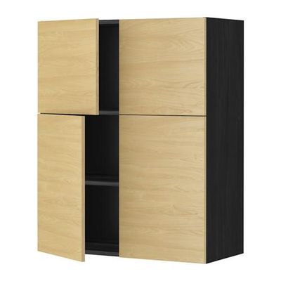 МЕТОД Навесной шкаф с полками/4дверцы - Тингсрид под березу, под дерево черный