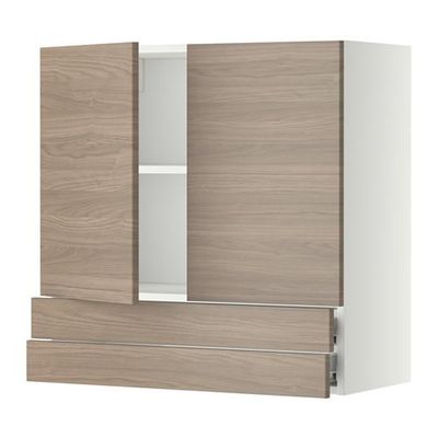МЕТОД / ФОРВАРА Навесной шкаф/2дверцы/2ящика - 80x80 см, Брокхульт под грецкий орех светло-серый, белый