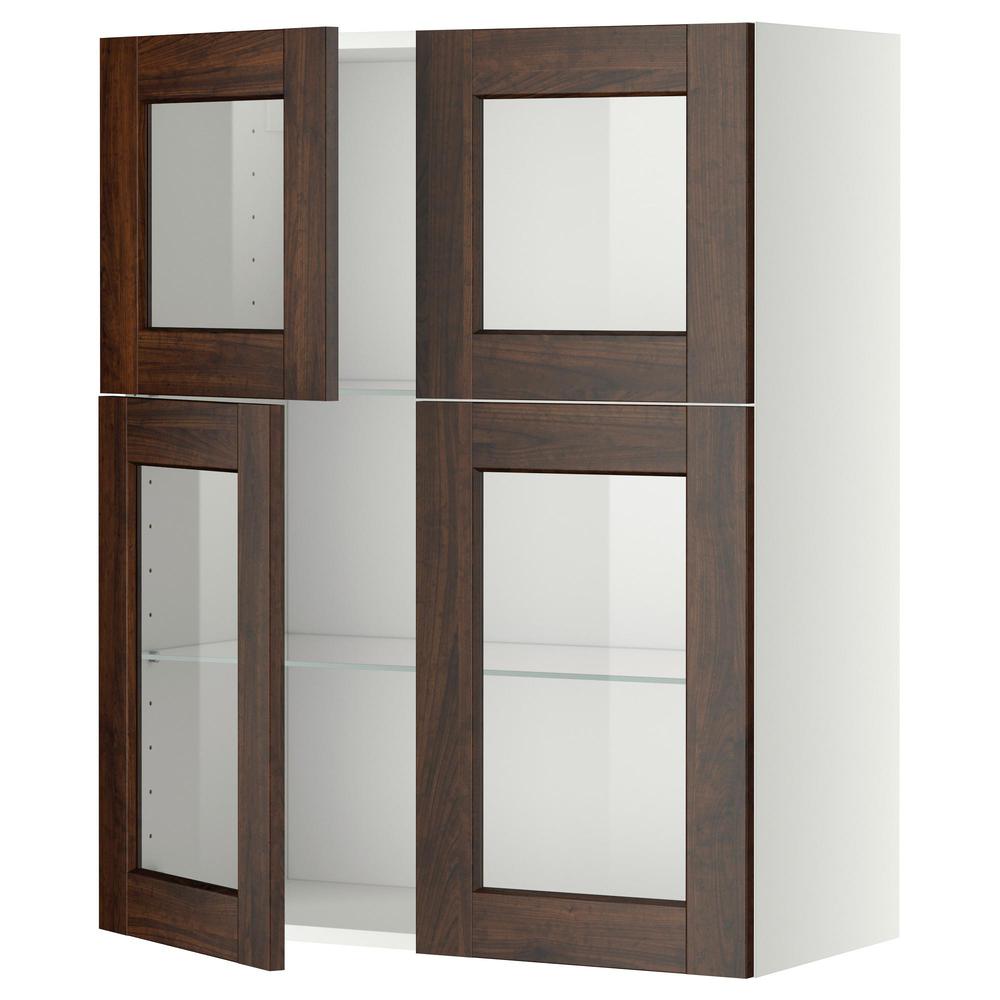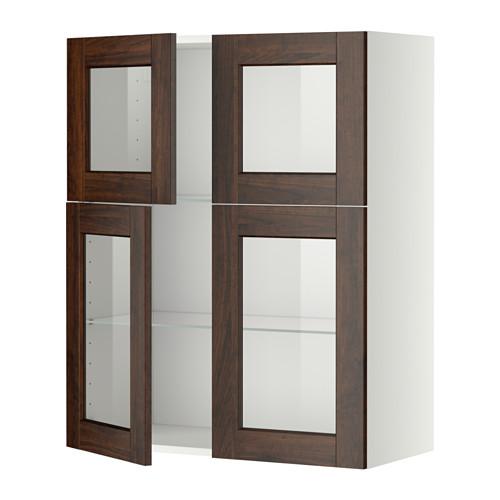 МЕТОД Навесной шкаф с полками/4 стекл дв - белый, Эдсерум под дерево коричневый