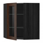 МЕТОД Углов навесн шк с полками/сткл дв - под дерево черный, Эдсерум под дерево коричневый, 68x60 см