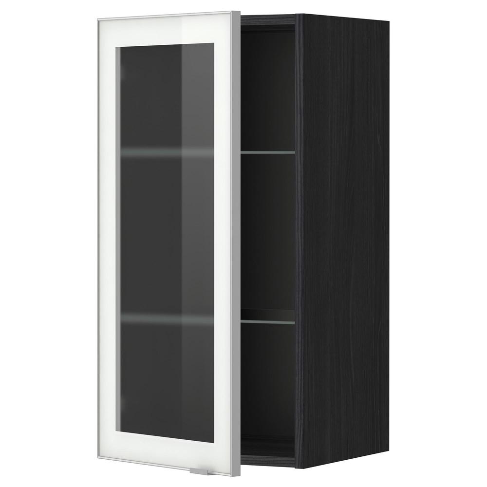 МЕТОД Навесной шкаф с полками/стекл дв - под дерево черный, Ютис матовое стекло/алюминий, 40x80 см