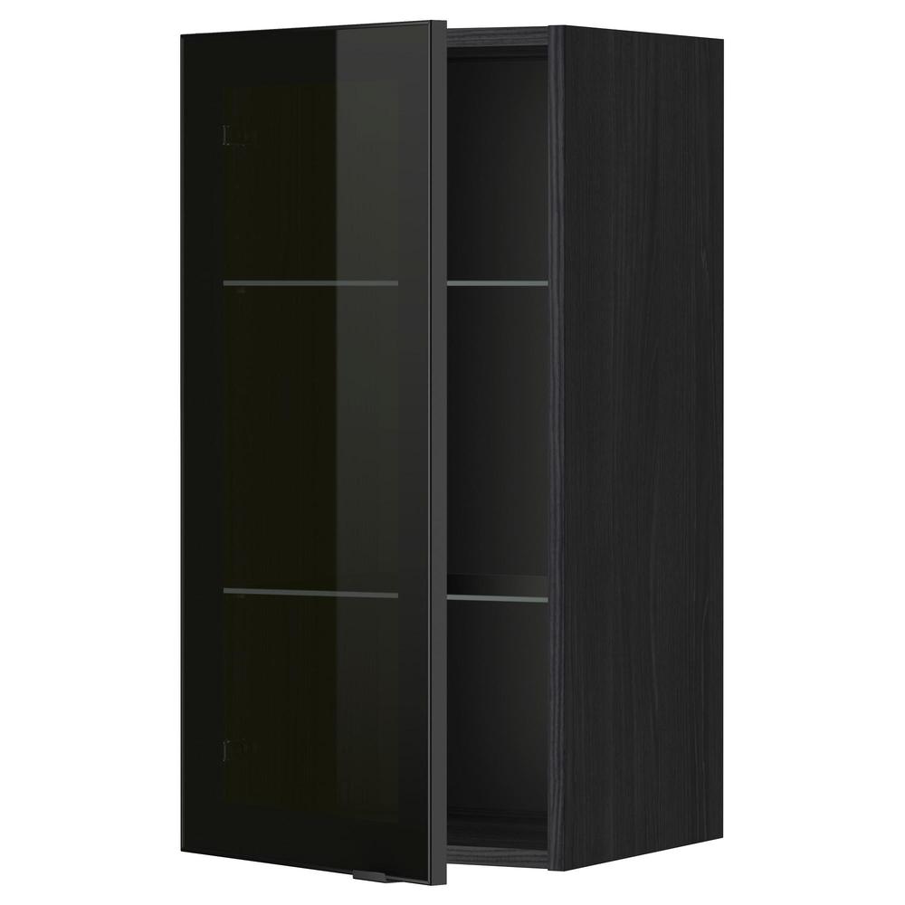МЕТОД Навесной шкаф с полками/стекл дв - под дерево черный, Ютис дымчатое стекло/черный, 40x80 см