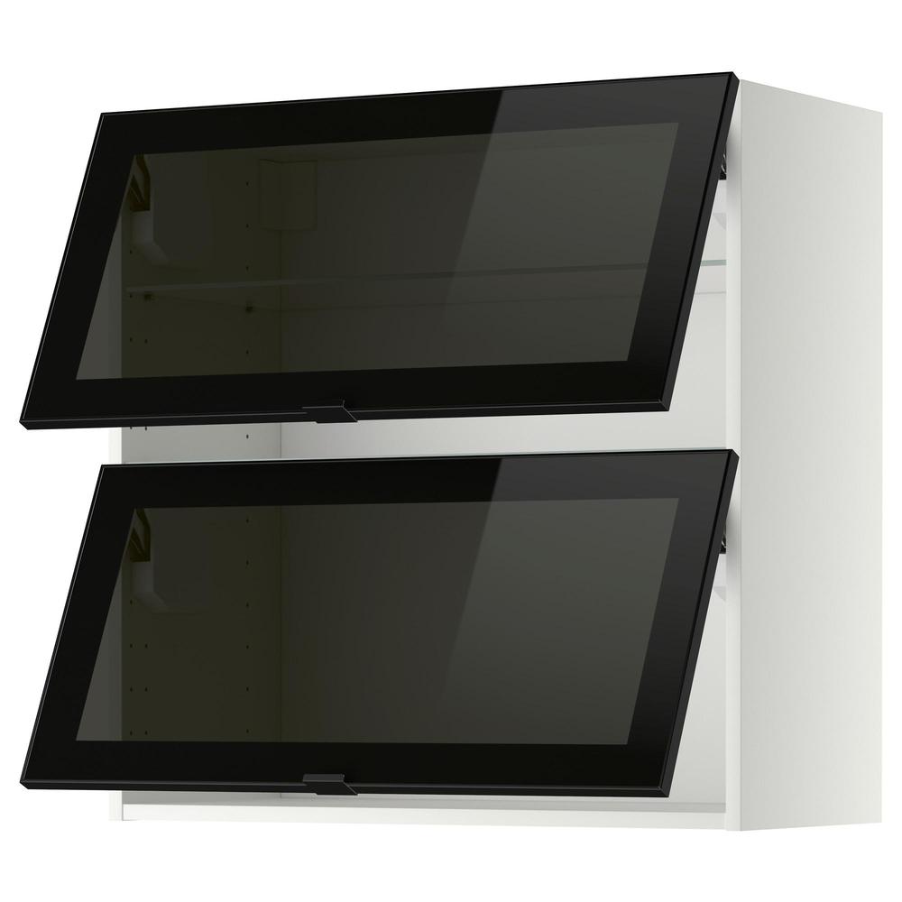 МЕТОД Навесн горизонтал шкаф/2 зерк дверц - белый, Ютис дымчатое стекло/черный, 60x80 см 0.0/5 оценка (0 голосов)