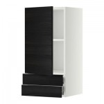 МЕТОД / ФОРВАРА Навесной шкаф с дверцей/2 ящика - 40x80 см, Нодста белый/алюминий, под дерево черный
