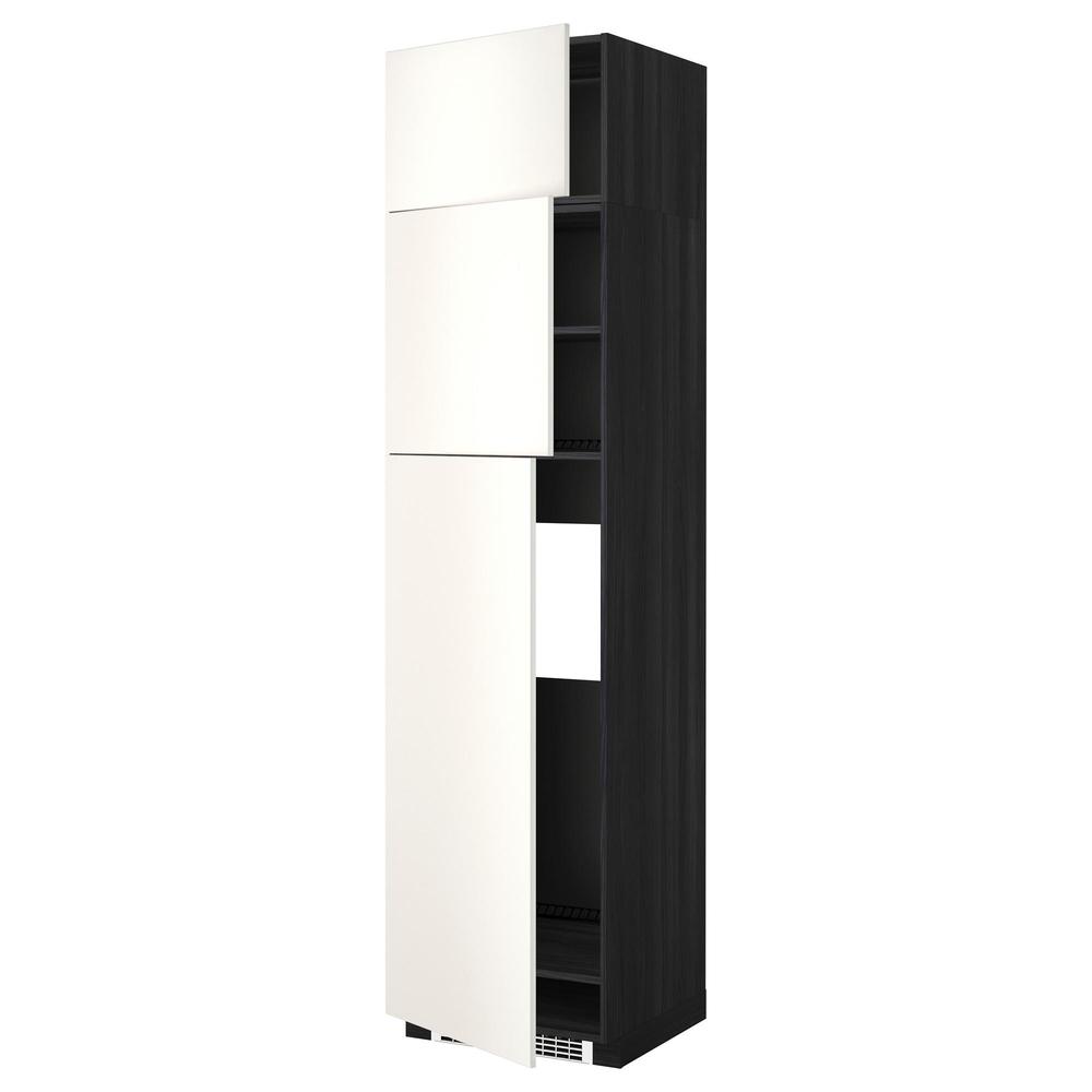 МЕТОД Высокий шкаф д/холодильника/3дверцы - под дерево черный, Веддинге белый