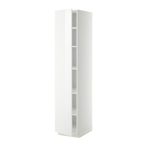 МЕТОД Высок шкаф с полками - белый, Рингульт глянцевый белый, 40x60x200 см
