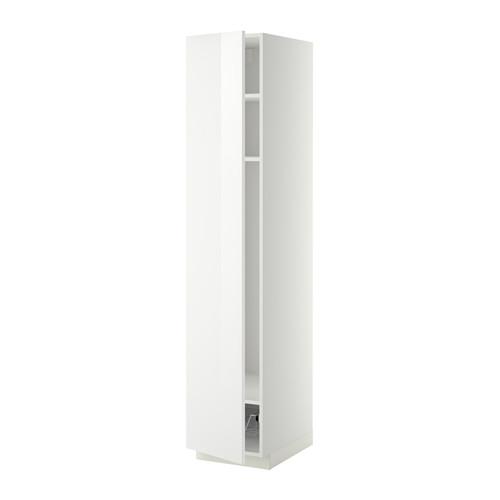 МЕТОД Выс шкаф с полками/проволоч корзин - белый, Рингульт глянцевый белый, 40x60x200 см