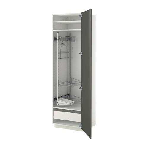 МЕТОД / ФОРВАРА Выс шк с отд д/акс д/убрк - 60x60x200 см, Рингульт глянцевый серый, белый