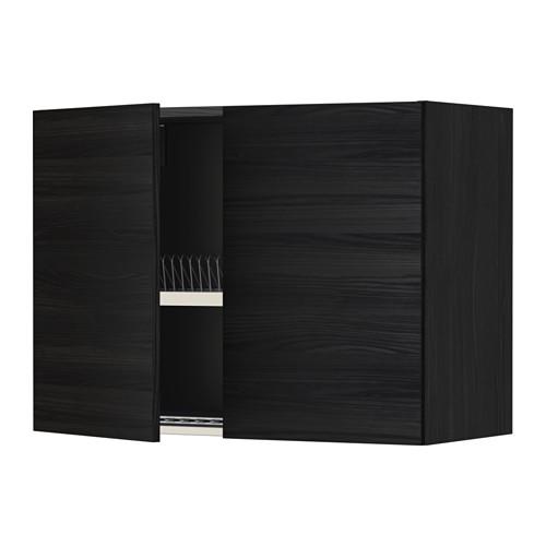 МЕТОД Навесной шкаф с посуд суш/2 дврц - под дерево черный, Тингсрид под дерево черный, 80x60 см