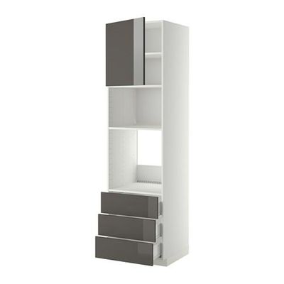 МЕТОД / ФОРВАРА Высок шкаф д/духовки/СВЧ/дверца/3ящ - 60x60x220 см, Рингульт глянцевый серый, белый