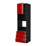 МЕТОД / ФОРВАРА Высок шкаф д/духовки/СВЧ/дверца/3ящ - 60x60x220 см, Тингсрид под дерево черный, под дерево черный