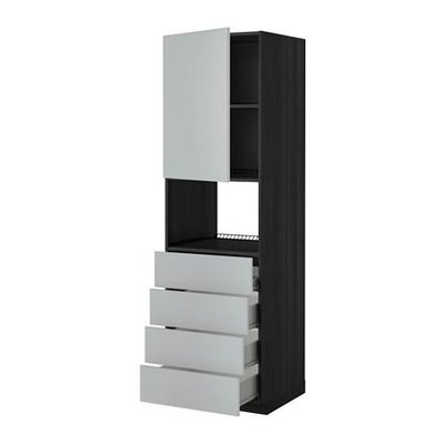 МЕТОД / ФОРВАРА Высок шкаф д/духовки/дверца/4ящика - 60x60x200 см, Веддинге серый, под дерево черный