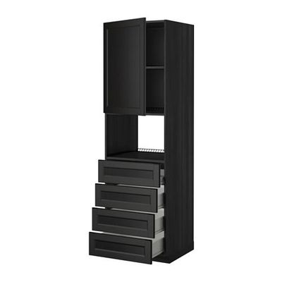 МЕТОД / ФОРВАРА Высок шкаф д/духовки/дверца/4ящика - 60x60x200 см, Лаксарби черно-коричневый, под дерево черный
