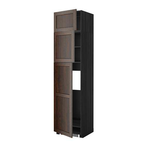 МЕТОД Высокий шкаф д/холодильника/3дверцы - под дерево черный, Эдсерум под дерево коричневый