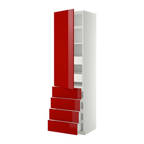 МЕТОД / ФОРВАРА Выс шкаф с плк/6 ящк/ дверц/4 фрнт - 60x60x220 см, Рингульт глянцевый красный, белый