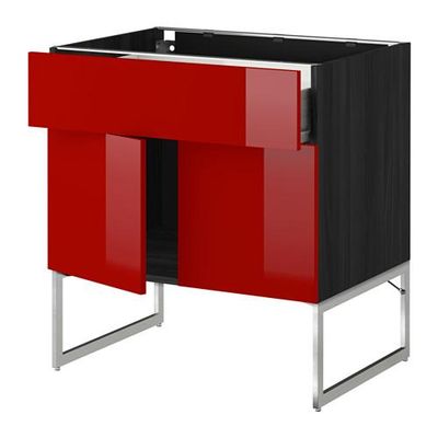 МЕТОД / ФОРВАРА Напол шкаф/полки/ящик/2двери - Рингульт глянцевый красный, под дерево черный
