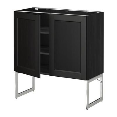 МЕТОД Напол шкаф с полками/2двери - 80x37x60 см, Лаксарби черно-коричневый, под дерево черный