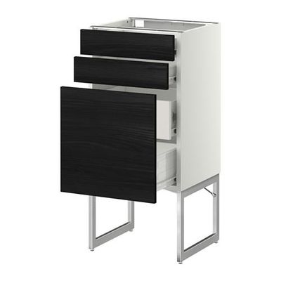 МЕТОД / ФОРВАРА Напольн шкаф 3фронт пнл/2низ/2ср ящ - 40x37x60 см, Тингсрид под дерево черный, белый