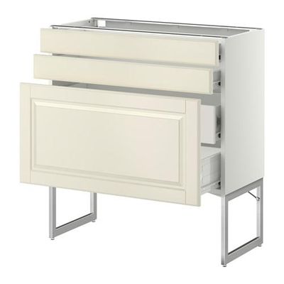 МЕТОД / ФОРВАРА Напольн шкаф 3фронт пнл/2низ/2ср ящ - 80x37x60 см, Будбин белый с оттенком, белый