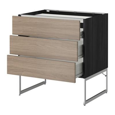 МЕТОД / ФОРВАРА Напольн шкаф/3фронт пнл/3ящика - 80x60x60 см, Брокхульт под грецкий орех светло-серый, под дерево черный