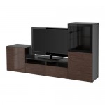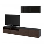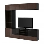 БЕСТО Стеллаж с дверьми - черно-коричневый/Сельсвикен глянцевый/коричневый