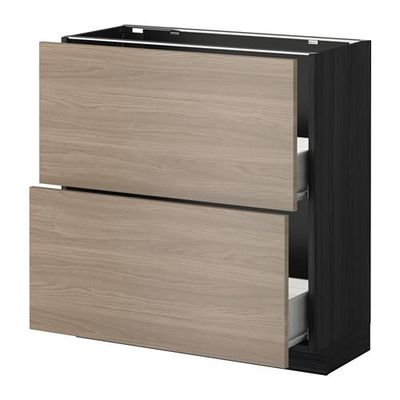 МЕТОД / ФОРВАРА Напольный шкаф с 2 ящиками - 80x37 см, Брокхульт под грецкий орех светло-серый, под дерево черный