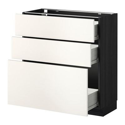 МЕТОД / ФОРВАРА Напольный шкаф с 3 ящиками - 80x37 см, Веддинге белый, под дерево черный