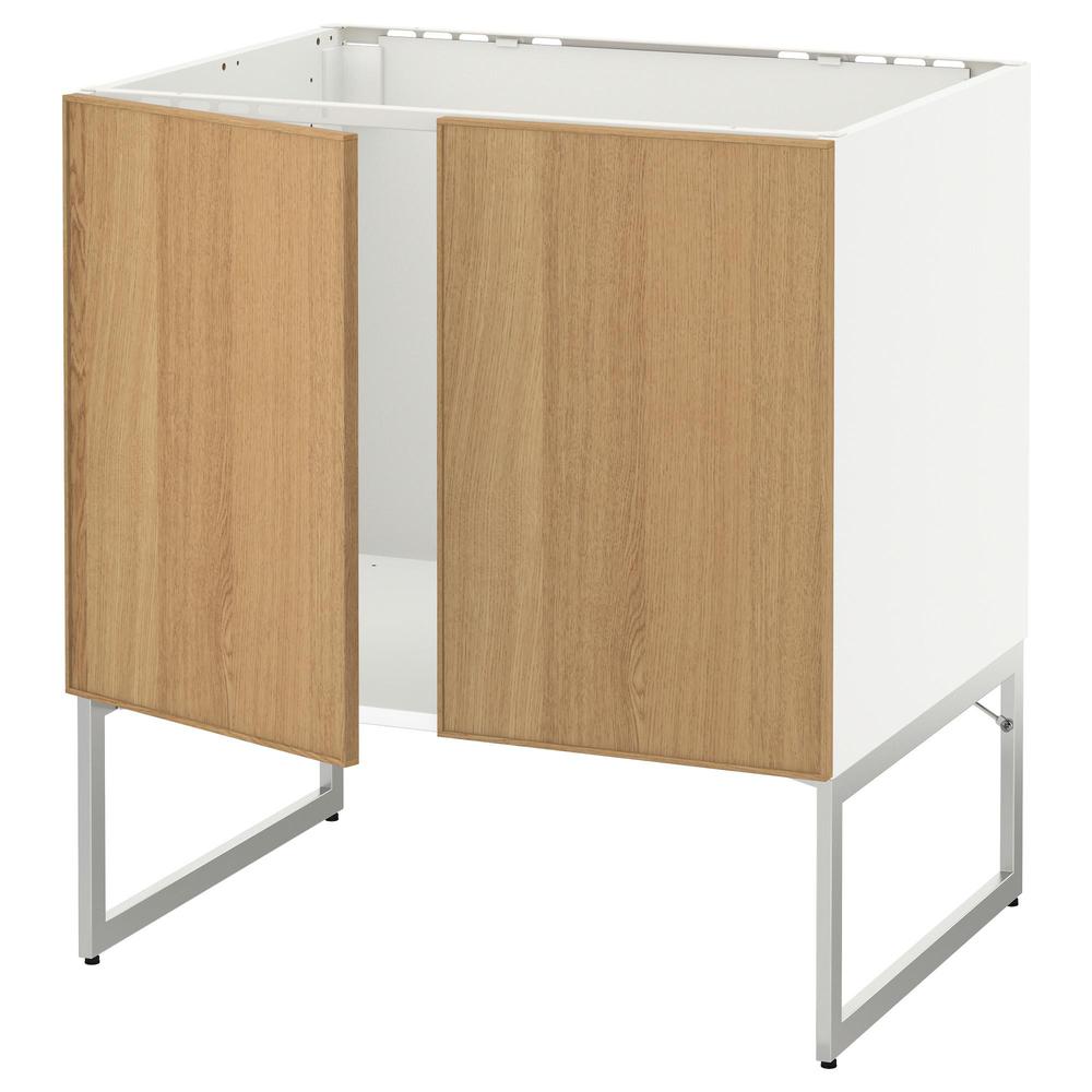 МЕТОД Напольн шкаф д раковины+2 двери - белый, Экестад дуб