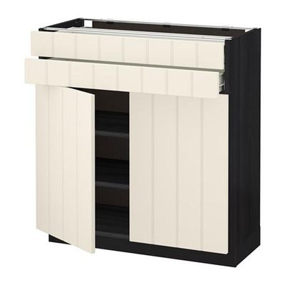 МЕТОД / ФОРВАРА Напольный шкаф/2дверцы/2ящика - Хитарп белый с оттенком, под дерево черный