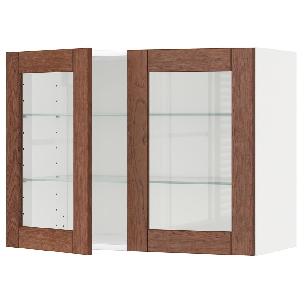МЕТОД Навесной шкаф с полками/2 стекл дв - белый, Филипстад коричневый, 80x60 см