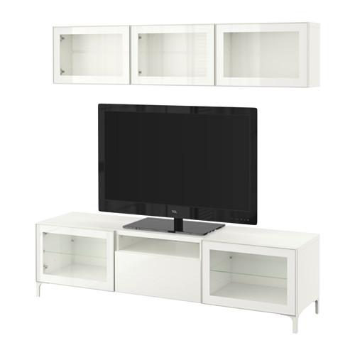 БЕСТО Шкаф для ТВ, комбин/стеклян дверцы - белый/Сельсвикен глянцевый/белый прозрачное стекло, направляющие ящика, плавно закр