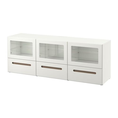 БЕСТО Тумба под ТВ, с дверцами и ящиками - Марвикен белый прозрачное стекло, направляющие ящика, плавно закр