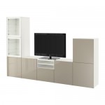БЕСТО Шкаф для ТВ, комбин/стеклян дверцы - белый/Сельсвикен глянцевый/бежевый прозрачное стекло, направляющие ящика, плавно закр