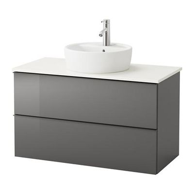 ГОДМОРГОН/АЛДЕРН / ТОРНВИКЕН Шкаф п-раковину/столешн45/раковина - белый, глянцевый серый
