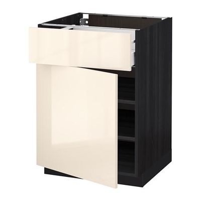 МЕТОД / МАКСИМЕРА Напольный шкаф с ящиком/дверью - 60x60 см, Рингульт глянцевый кремовый, под дерево черный