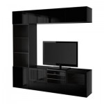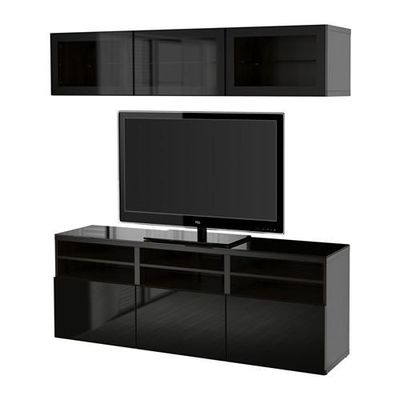 БЕСТО Шкаф для ТВ, комбин/стеклян дверцы - направляющие ящика, плавно закр, черно-коричневый/Сельсвикен глянцевый/черный прозрачное стекло