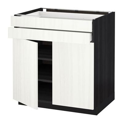 МЕТОД / МАКСИМЕРА Напольный шкаф/2дверцы/2ящика - 80x60 см, Росдаль белый ясень, под дерево черный