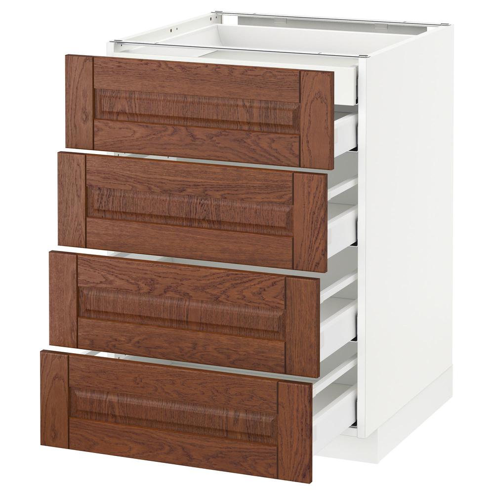 МЕТОД / МАКСИМЕРА Нплн шк 4фрнт/2нзк/3срд ящ - белый, Филипстад коричневый, 60x60 см
