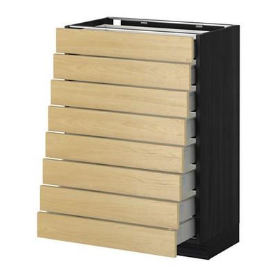 МЕТОД / МАКСИМЕРА Наполн шкаф 8 фронт/8 низк ящиков - 60x37 см, Тингсрид под березу, под дерево черный