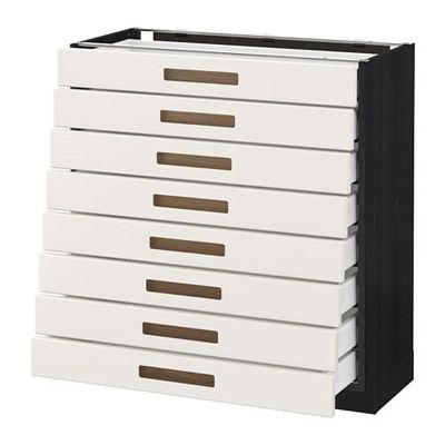 МЕТОД / МАКСИМЕРА Наполн шкаф 8 фронт/8 низк ящиков - 80x37 см, Мэрста белый, под дерево черный