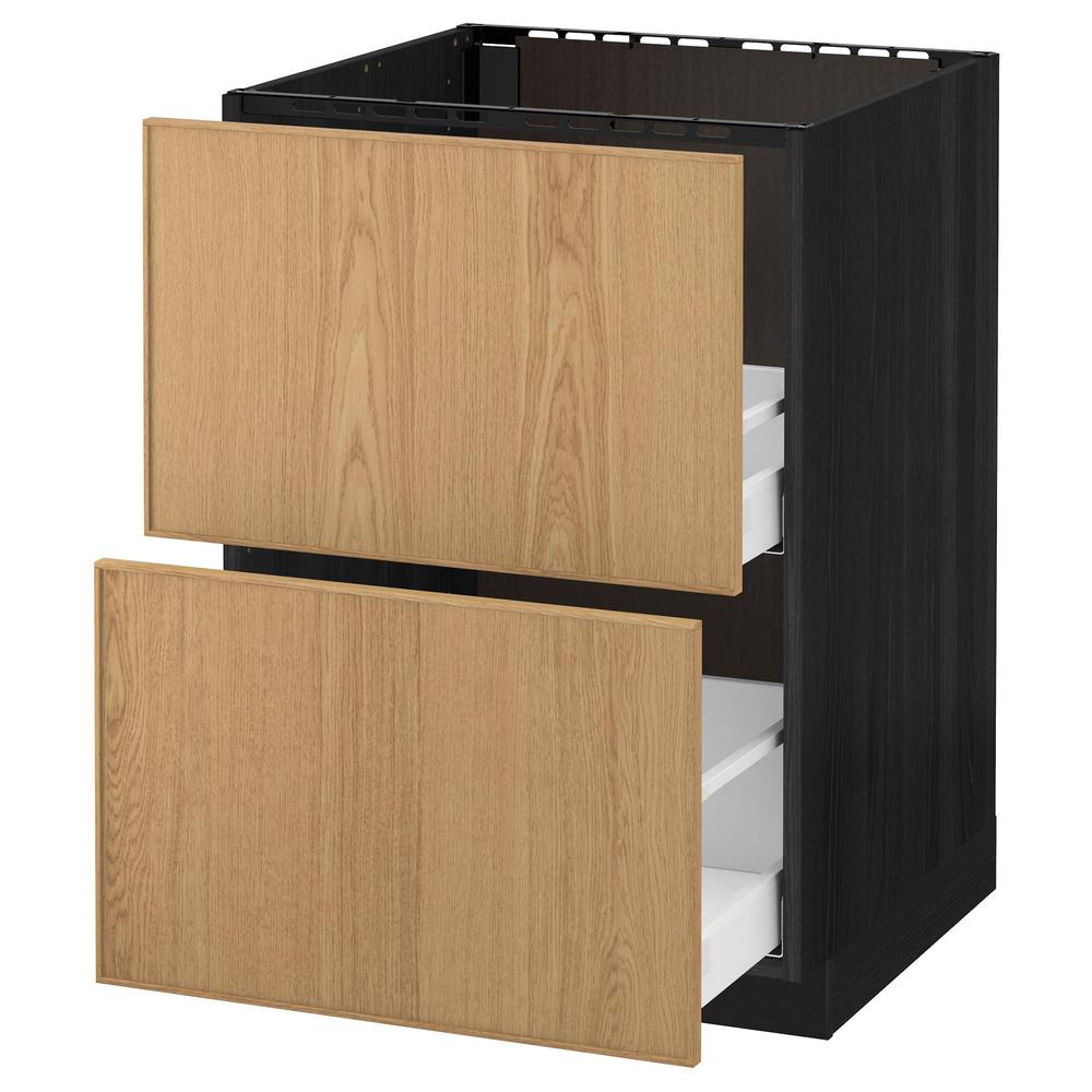 МЕТОД / МАКСИМЕРА Напольн шк п-мойку+2фрнт пнл/2 ящ - под дерево черный, Экестад дуб, 60x60 см