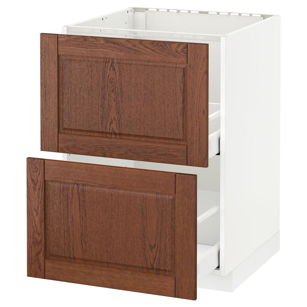 МЕТОД / МАКСИМЕРА Напольн шк п-мойку+2фрнт пнл/2 ящ - белый, Филипстад коричневый, 60x60 см