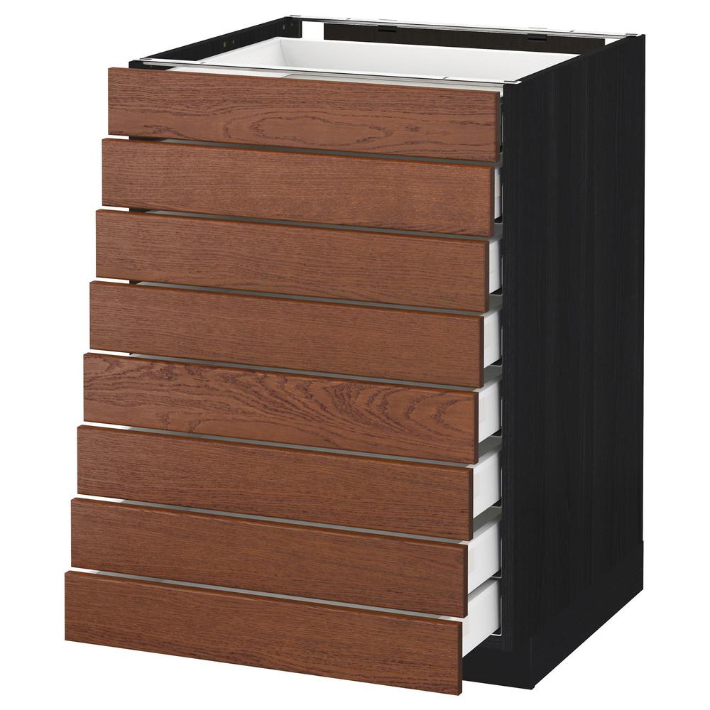 МЕТОД / МАКСИМЕРА Наполн шкаф 8 фронт/8 низк ящиков - под дерево черный, Филипстад коричневый, 60x60 см