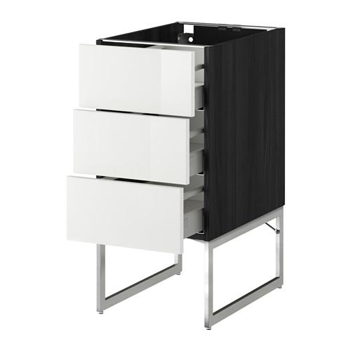 МЕТОД / МАКСИМЕРА Нплн шк 3 фрнт/3 средн ящика - под дерево черный, Рингульт глянцевый белый, 40x60x60 см