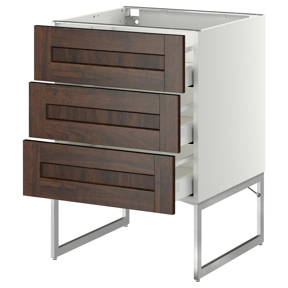 МЕТОД / МАКСИМЕРА Нплн шк 3 фрнт/3 средн ящика - белый, Эдсерум под дерево коричневый, 60x60x60 см