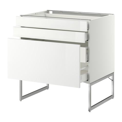 МЕТОД / МАКСИМЕРА Напольн шкаф 3фронт пнл/2низ/2ср ящ - белый, Рингульт глянцевый белый, 80x60x60 см